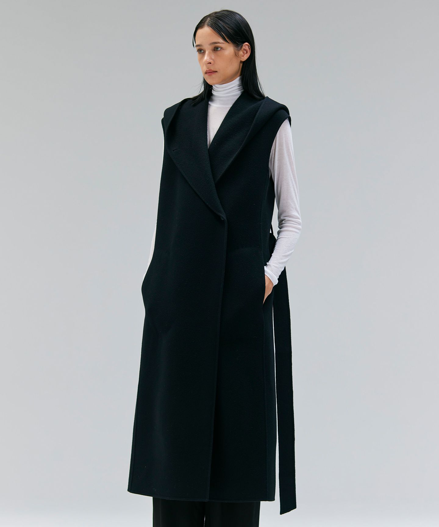 BEIGE,(ベイジ)/LEMOORE / ウールリバーフード付きロングジレ