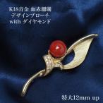 K18青金 血赤珊瑚 デザイン ブローチ 特大12mm up 鑑別書付き 天然さんご サンゴ 大ぶり 大きめ レッド 個性的 ギフト プレゼント 還暦 普段使い 日本製