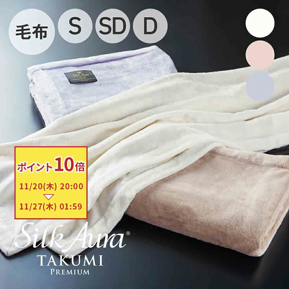 Silk Aura 匠 PREMIUM 掛け毛布 シルクオーラ [ 日本製 シルク毛布 泉大津 毛布 絹 シルク 軽い 暖かい あったか 吸湿 天然 高級 暖かい毛布 蒸れない ブランケット ケット 静電気 快眠博士 シングル セミダブル ダブル ]