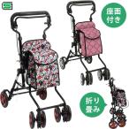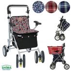 シルバーカー アルト 格子NB・花柄BR 島製作所 折りたたみ可 買い物かごもOK 傘ホルダー付