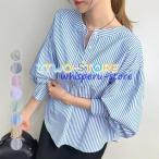 ブラウス ハイネック ボーダー柄 オフィスカジュアル ピンク 韓国 ファッション ストライプ柄バルーンスリーブバンドカラーブラウス