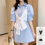 春 夏レディース トップス リボン 肩掛け ロング シャツ ブラウス バルーン袖 タック ふっくら 立体袖 大きなリボン 蝶々結び 可愛い 個性的 ボウタイ 薄手 ホワ