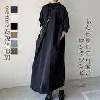 ロングワンピース フリル ワンピース 夏 レディース 早秋 きれいめ 黒 ゆったり マキシワンピース フレアワンピース シャツワンピース 体型カバー
