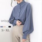 春新作 ブラウス 長袖 ハイネック スタンドカラー ノーカラー ぽわん袖 上品 バルーン袖 カジュアル 韓国 シャツ 長袖 トップス レディース S M L XL