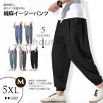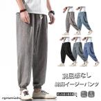 イージーパンツ メンズ 綿麻 サルエルパンツ ズボン 無地 爽やか ポケット 通気 吸湿 軽量 リラックス ゆったり 日常 部屋着 カジュアル 春 夏 ユニセックス