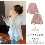ブラウス レディース シャツ 長袖 リボン 無地 白 上品 薄手 トップス ゆったり 体型カバー シフォン ショート おしゃれ きれいめ 可愛い 春