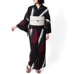 浴衣 JUNKO KOSHINO セオアルファ ジオメトリック柄 赤 黒 絵羽風 レディース シック 上品 カッコイイ 女性用 仕立上がり 単品 日本製 夏着物 幾何学