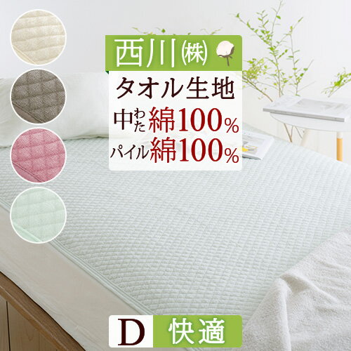 12/1限定★11%OFFクーポン 西川 敷きパッド ダブル パイル 生地 中綿まで綿100% タオル 春 夏 秋 冬 汗 京都西川 タオル地 シンカーパイル敷きパッド 洗える ウォッシャブル 丸洗いOK ベッドパッド ベッドパット兼用 ダブルサイズ