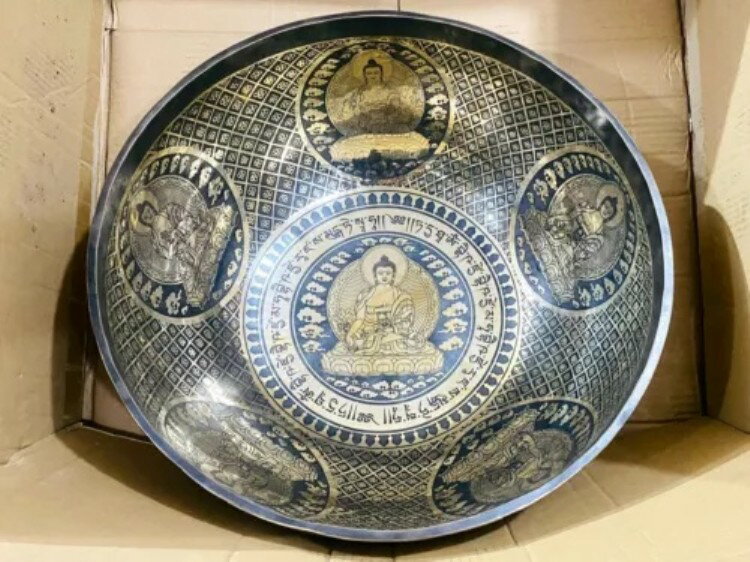 14〜24インチの瞑想仏と神聖なシンボルがエッチングされたシンギングボウル - 禅ボウル