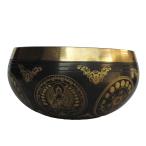 シンギングボウル 7メタル 手打ち 約11.5cm 320g 六字真言 満月文様 音浄化 ヨガ 瞑想 癒し ヒーリング マインドフルネス 浄化 おりん ネパール製 密教法具 開運 風水 スティック 台座付き