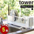 水切りラック 山崎実業 tower シンク上 スリム 2way ツーウェイ 水切り ワイヤーバスケット タワー 水切りかご 水切りカゴ