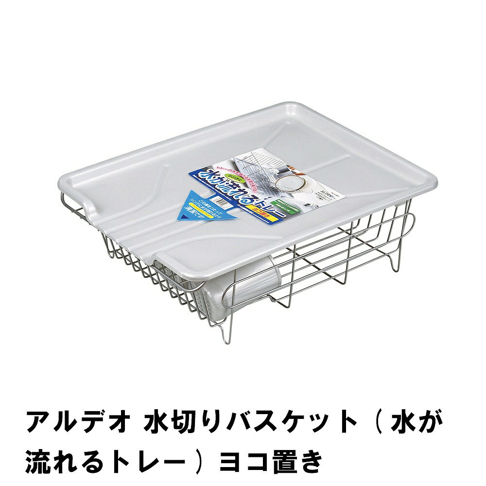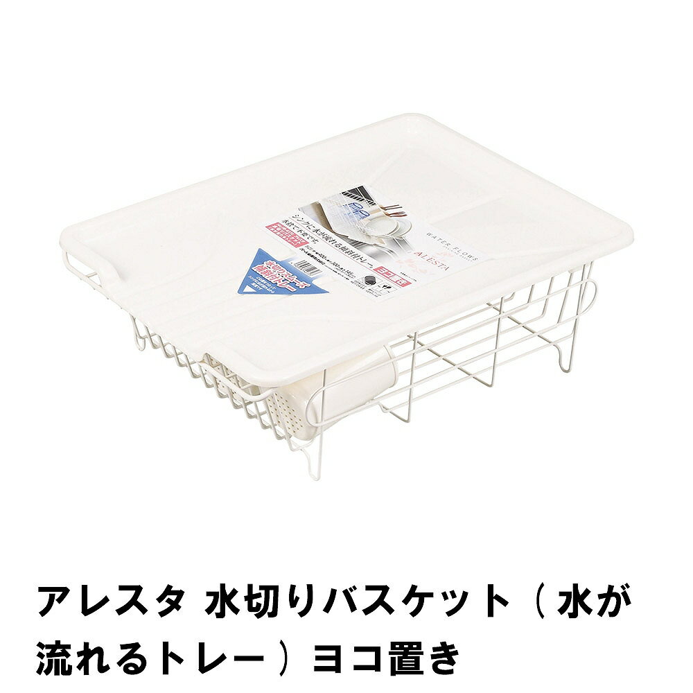【楽天スーパーSALE10%OFF】【値下げ】水切りバスケット 水切りラック 水が流れる ヨコ置き 水切り ディッシュラック トレー付き キッチン用品 シンク用品 食器洗い