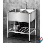 304ステンレス製流し台 シンク 台所用大容量2槽 横74cm×奥41cm×高さ75.5cm 室内外可用