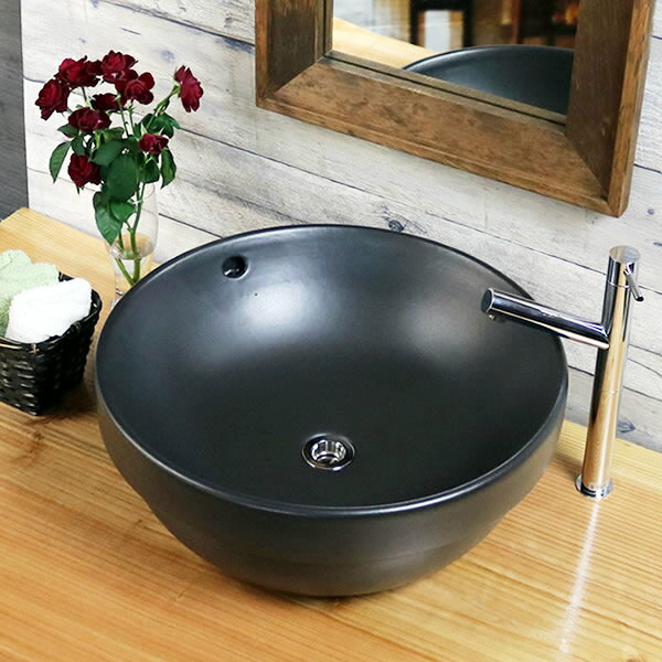【11月1日限定11%OFFクーポン】信楽焼 黒マット手洗い鉢 飽きのこない洗面鉢 お洒落な洗面器 手洗器 手洗鉢 洗面ボール 洗面シンク 陶器 洗面台 手洗い鉢 洗面ボール 洗面陶器 やきもの 和風 tr-4058