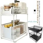 引き出し シンク下収納 ラック キッチン収納 2段 シンク下収納 収納棚 スライドラック 台所収納 シンプル ブラック ホワイト シンク下スライドラッ