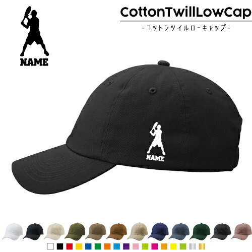 テニス1 名入れコットンツイルローキャップ 定番 帽子 キャップ UVカット 熱中症対策 UV対策 日よけ ランニング アウトドア ジョギング 屋外 かわいい おしゃれ ラケット ボール シングルス ダブルス 名入れキャップ 名入れ帽子 ワンポイントプリント 通気性 カジュアル