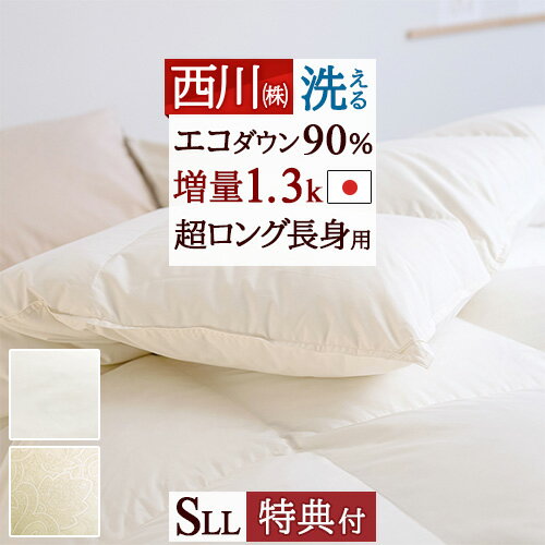12/1限定★11%OFFクーポン 羽毛布団 シングル 長身用 西川厳選ダウン90% 増量1.3kg 業界4倍の透視度2000mm コインランドリー対応 150×230cm 【掛布団カバー付】 羽毛掛け布団 羽毛ふとん シングルスーパーロング 冬用 暖か あったか 抗菌 日本製