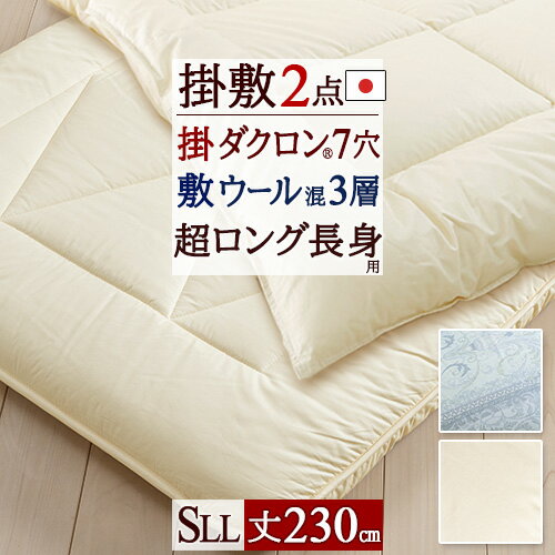 12/1限定★11%OFFクーポン 布団セット シングル長身用 日本製 合繊布団 2点セット ダクロン(R) 中わた使用 掛け布団が洗える シンプルな無地タイプ 掛け布団 敷布団 お布団セット 組布団 セット シングルスーパーロング