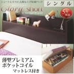 (タイムセール中) シングルベッド マットレス付き 薄型プレミアムポケットコイル 横開き/深さラージ 日本製 跳ね上げ式ベッド