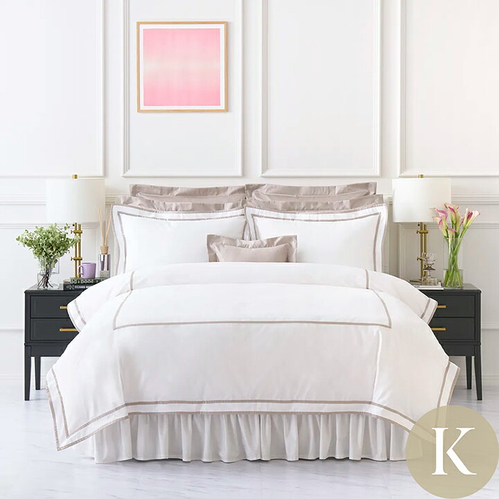 布団カバーセット キング 寝具カバー4点セット(ボックスシーツ1枚/掛け布団カバー1枚/包み型スタンダード枕カバー2枚) 綿 コットン エレガント ブルー ベージュ 無地 500TCボールドライン ホテルライクインテリア