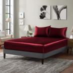 【並行輸入品】Bedsure サテンシーツ クイーンサイズ 4ピース シルキー ベッドシーツ 15インチ ディープポケット ボックスシーツ、