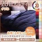 (タイムセール中) ボックスシーツ ダブル コットンタオル生地キルトケット&ボックスシーツセット ベッドカバー ベッドシーツ