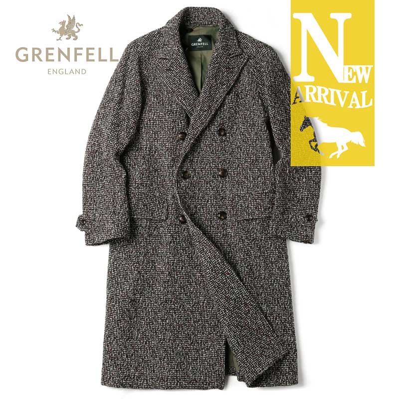 【40%OFF】GRENFELL / グレンフェル|ファンシーツイードダブルチェスターコート(LINGFIELD)|(ブラウン×ブラック×ホワイト)| 秋冬 アウター ダブルブレストコート ツイードコート 英国製 メンズ イギリス アウトレット