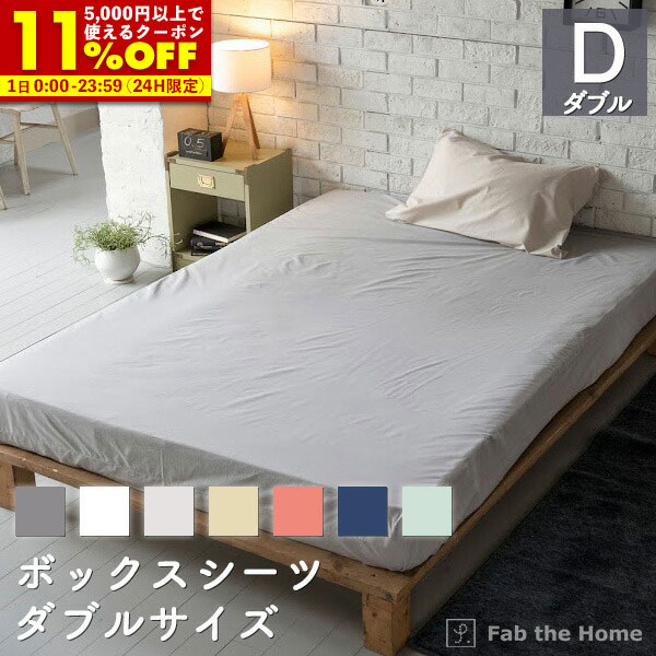 【クーポンで11%OFF★12/1 0:00〜23:59】 ボックスシーツ ダブル 綿100% 140×200×30cm ソリッド 送料無料 なめらか グレー ピンク 北欧 オシャレ 寝具 コットン ベッドシーツ やわらか ベッド リネンfab the home SOLID ファブザホーム