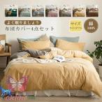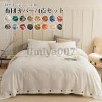 掛け布団カバー 4点セット ワイドダブル フラットシーツ ボックスシーツ 枕カバー 布団カバー 洗える 寝具カバーセット 無地 北欧 新生活 220*240cm