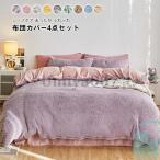 布団カバーセット 4点セット ダブル ワイドダブル あったか 暖かい フランネル 掛布団カバー ベッドシーツ 枕カバー 布団カバー 冬用 新生活 220cmX240cm