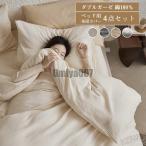 布団カバー 4点セット 二重ガーゼ 綿100% ダブル ワイドダブル キング クイーン ベッド用 布団カバーセット 掛け布団カバー フラットシーツ ボックスシーツ 枕カ