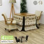 こたつテーブルセット 4点セット 2人用 長方形 こたつ ダイニングこたつセット ハイタイプ 90cm幅 回転式 肘掛け こたつテーブル