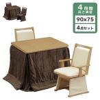 こたつテーブルセット こたつ4点セット 2人用 ハイタイプ 4点セット 90cm幅 こたつ ダイニングこたつセット 回転式 肘掛け