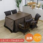こたつ こたつ6点セット ハイタイプ 4人用 ダイニングこたつセット 135 こたつ布団 長方形 こたつチェア 回転式 肘掛付き キャスター付き