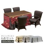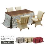 ダイニングこたつセット こたつ ハイタイプ 150cm幅 4人用 6点セット こたつテーブルセット こたつ6点セット 回転式 肘掛け テーブル 暖房機器