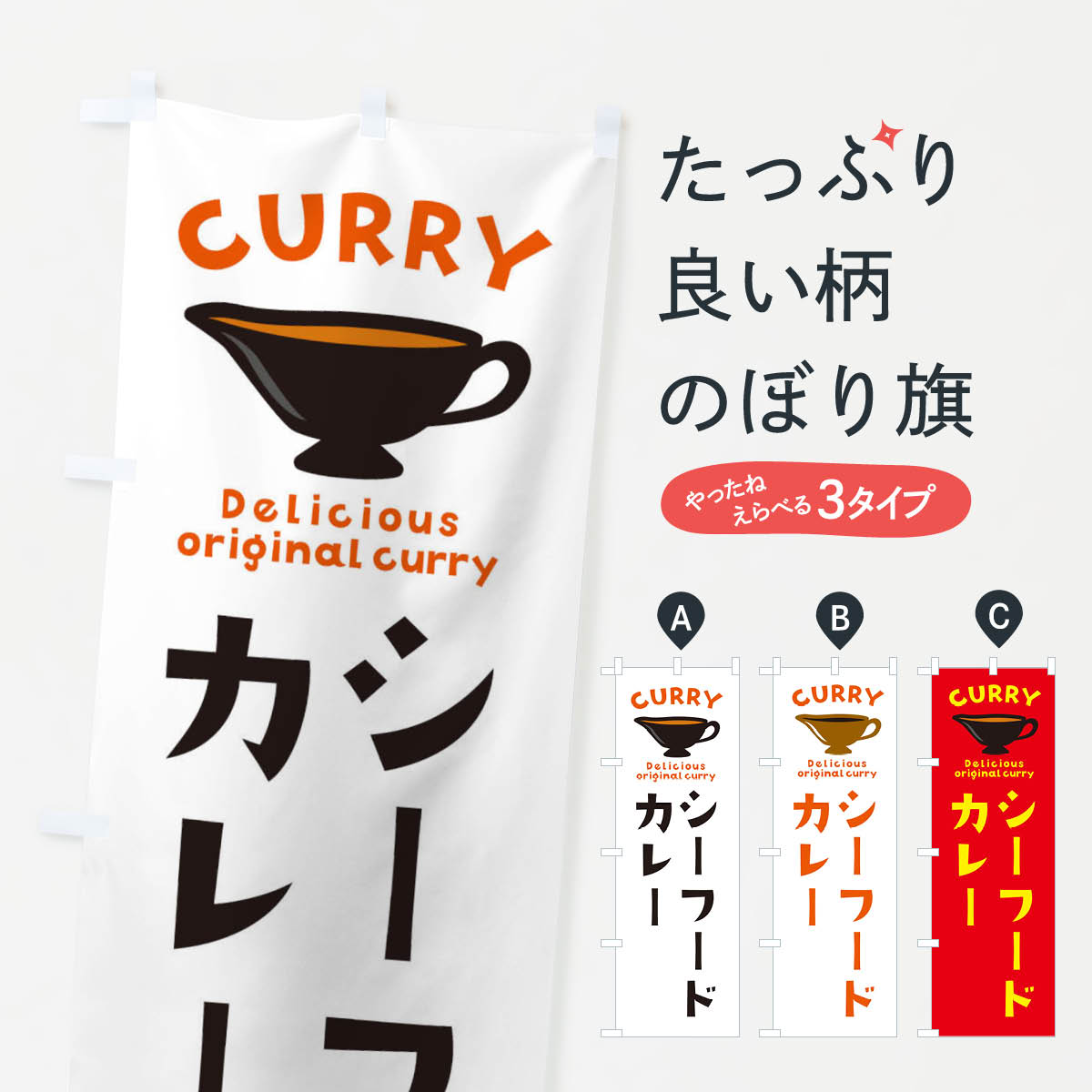 【ネコポス送料360】 のぼり旗 シーフードカレーのぼり EK44 カレーライス グッズプロ 【名入れできます+1017円】