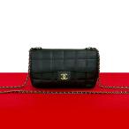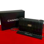 極 美品 箱 袋付 カード シール有 6番台 CHANEL シャネル チョコバー 2.55 ラムスキン レザー チェーン ショルダーバッグ ブラック 13294