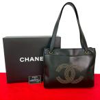 極 美品 カード シール有 2番台 CHANEL シャネル ココマーク スタッズ レザー 本革 トートバッグ セミ ショルダーバッグ ブラック 29555
