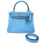 【銀座店】 エルメス ケリー25 W刻印 2024年製 シルバー(パラジウム)金具 ※金具にシール付き レディース ハンドバッグ スイフト Celeste セレスト(ブルー系) DH85708【大黒屋質店出品】 【中古】【送料無料】【店頭受取対応商品】