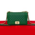 極 美品 シール有 22番台 CHANEL シャネル ボーイシャネル ココマーク ラムスキン レザー チェーン ショルダーバッグ グリーン 27446