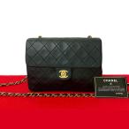 極 美品 カード シール有 2番台 CHANEL シャネル マトラッセ ココマーク ラムスキン チェーン ショルダーバッグ ブラック 21365
