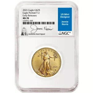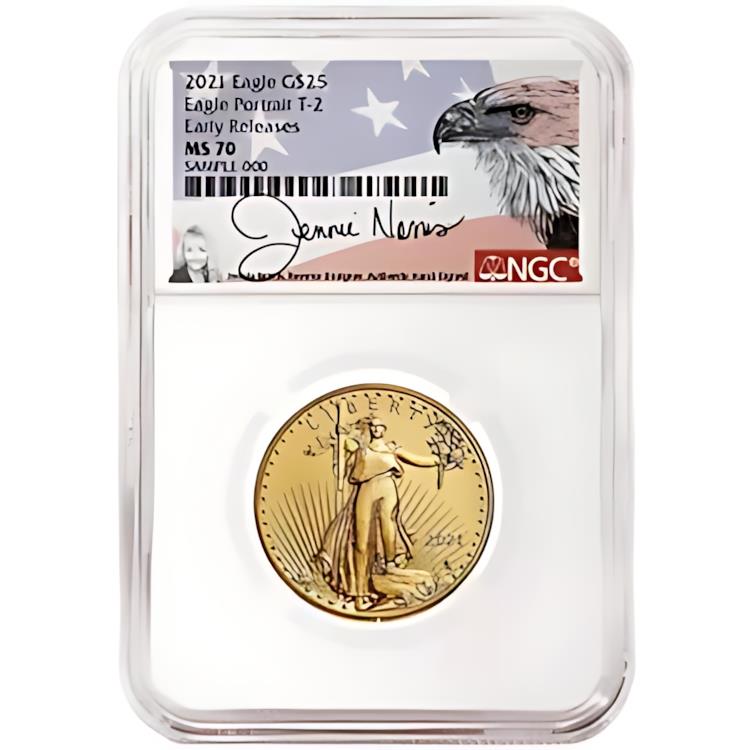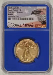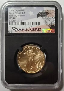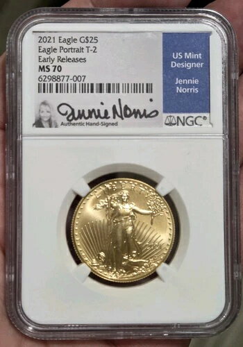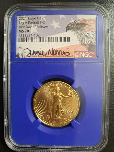 2021 ゴールドイーグル $25 T-2 NGC MS70 発売初日 ジェニー・ノリス直筆サイン入り