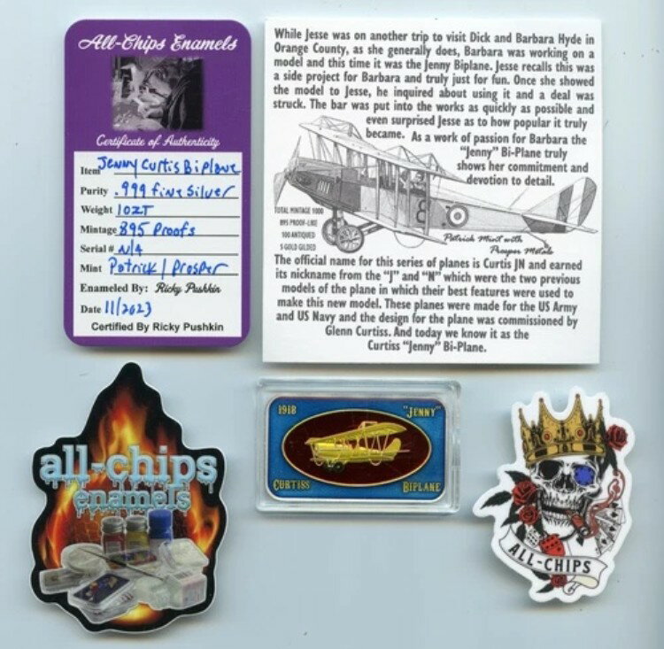 プロスパー・パティック・ミント ジェニー・カーティス バイプレーン エナメル オールチップ 1オンス 999 シルバーバー