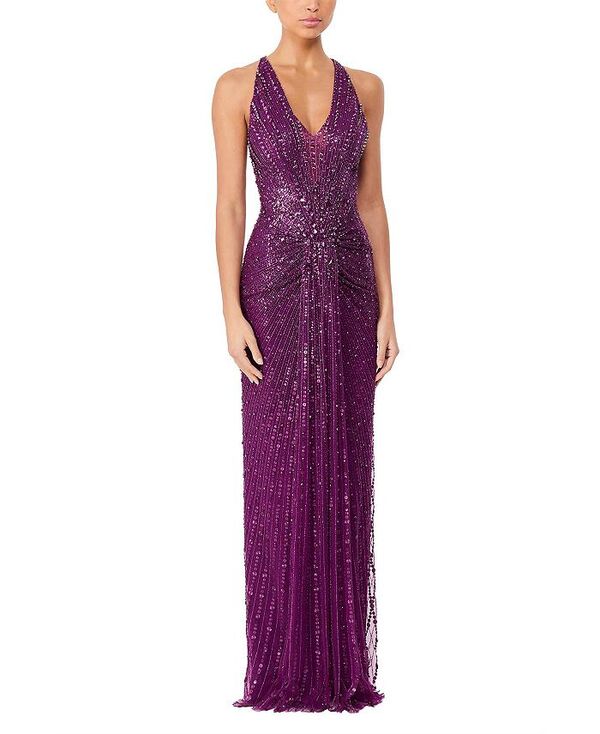 ジェニー・パッカム レディース トップス ワンピース マキシ Jenny Packham Victoire Rhinestone-Embellished Maxi Gown Liquorice