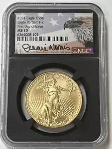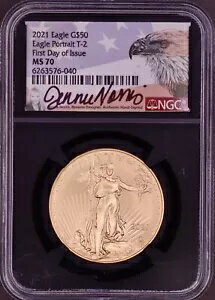 2021年 50ドル 1オンス ゴールド アメリカンイーグル T-2 NGC MS70 FDOIラベル ジェニー・ノリス直筆サイン入り