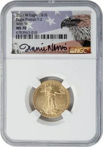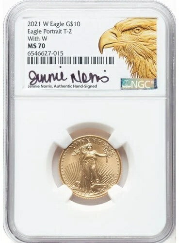 2021年 W 10ドル アメリカン・ゴールド・イーグル T2 ジェニー・ノリス署名入り MS70 NGC 949790-1
