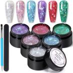 BORN PRETTY ジェルネイル フラッシュネイルジェルカラーセットネイルブラシ付き ラメ入りジェル カラージェルセット グリッター 6