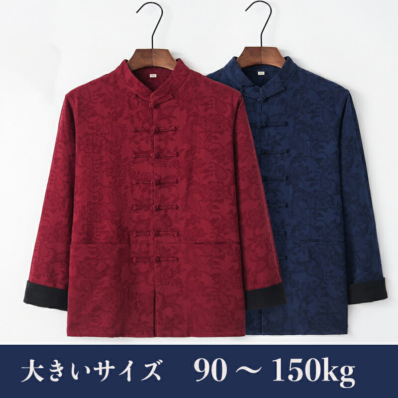大きいサイズ がっちり体型 肥満体型 チャイナ服 チャイナジャケット カンフー服 メンズ 男性用 2XL~9XL 中華風 ジャガード柄 ダブルカフス【送料無料】