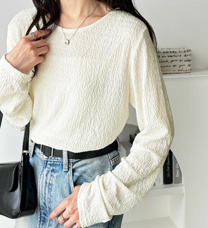 ●60%OFF!1,592円/枚!任意3枚購入&クーポンで●ジャガード トップス ジャガードブラウス 凹凸感 長袖 大人ブラウス ふんわリトップス レディース エンボス加工 おしゃれ かわいい Aライン 2025春
