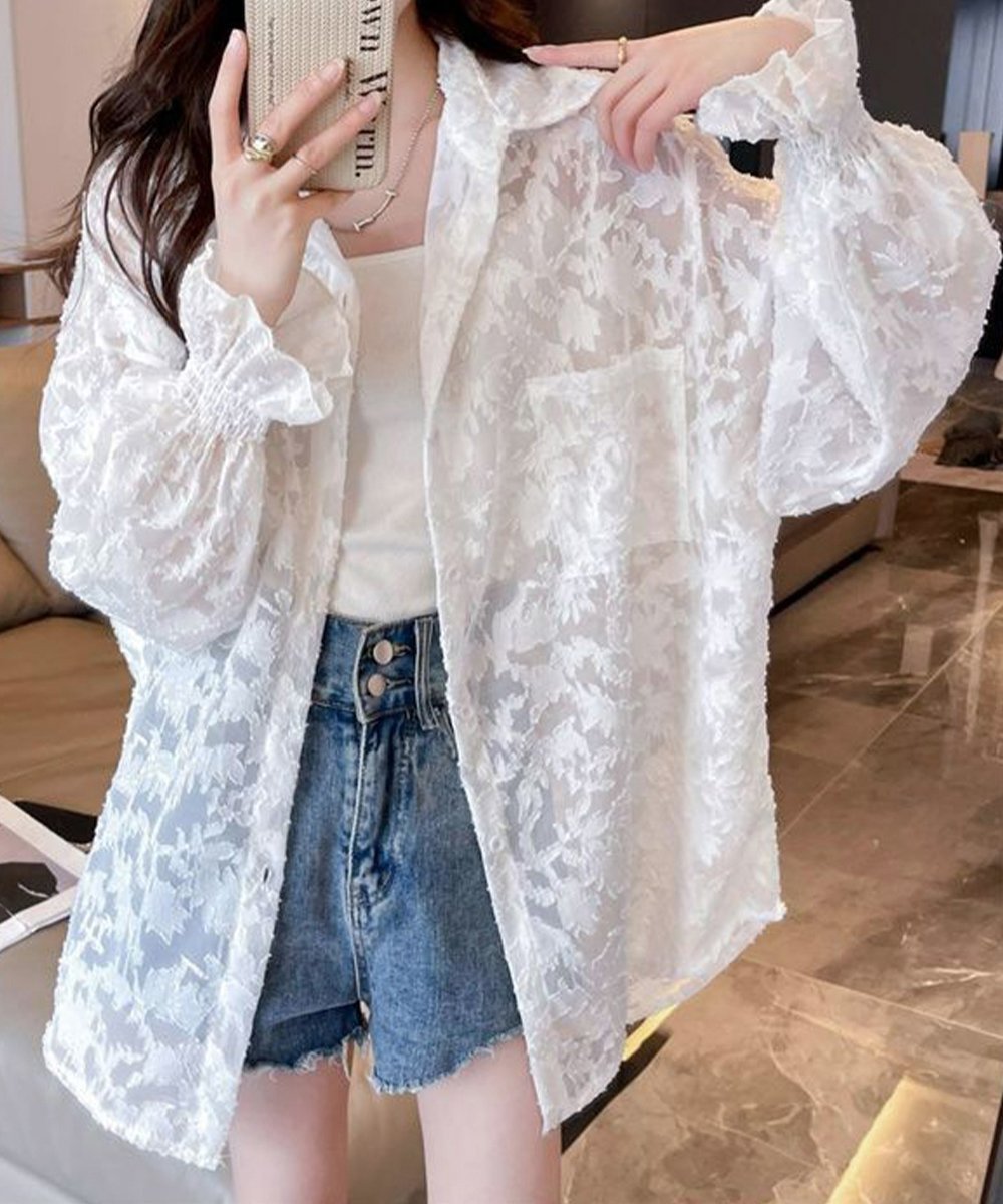 【SALE/30%OFF】miniministore ジャガードシアーカーディガン レディース ミニミニストア トップス カーディガン ホワイト ブラック ピンク